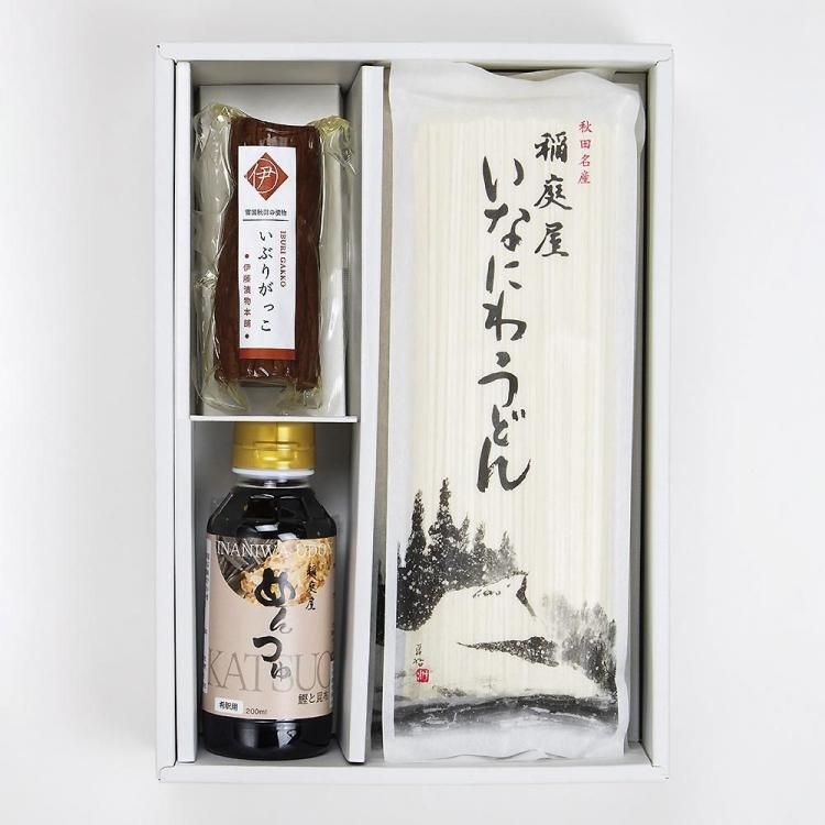 【送料無料】御歳暮限定商品 伊藤漬物本舗のいぶりがっこと稲庭うどん6人前【贈答用/紙箱入り】